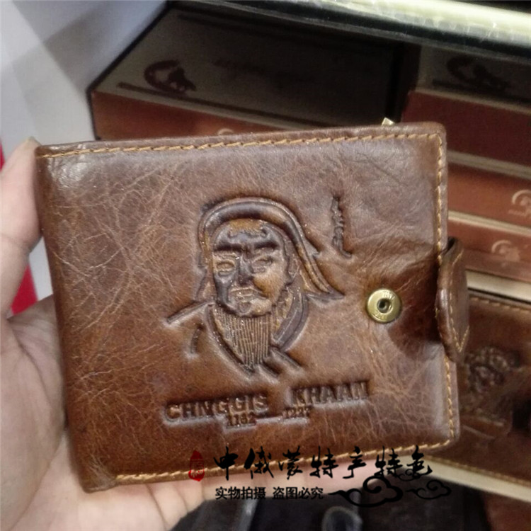 Mongolian Wallet Money Clip Short Clip Inner Mongolia Craft Gift Swing Accessories Bull Leather Original Handmade Head Layer Cow Leather Genuine Leather Men's Wallet