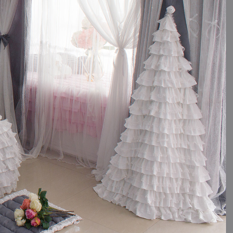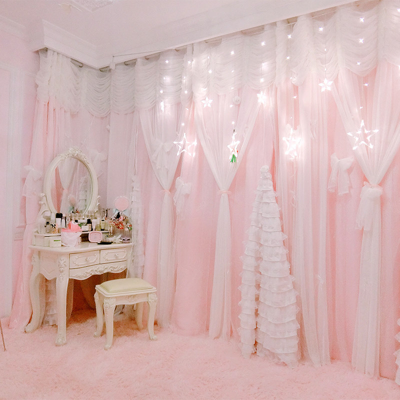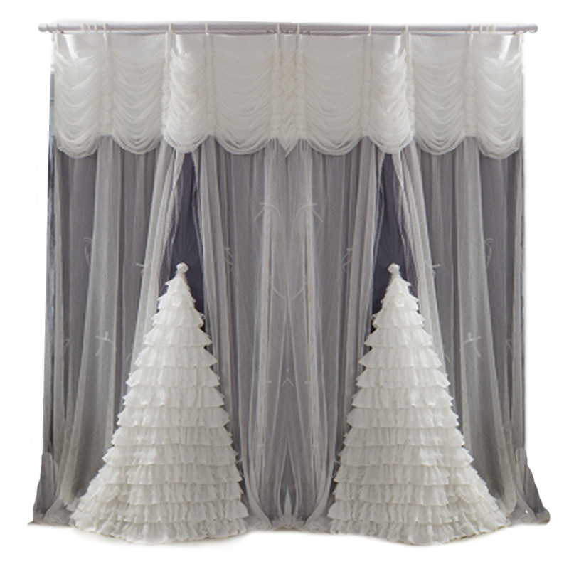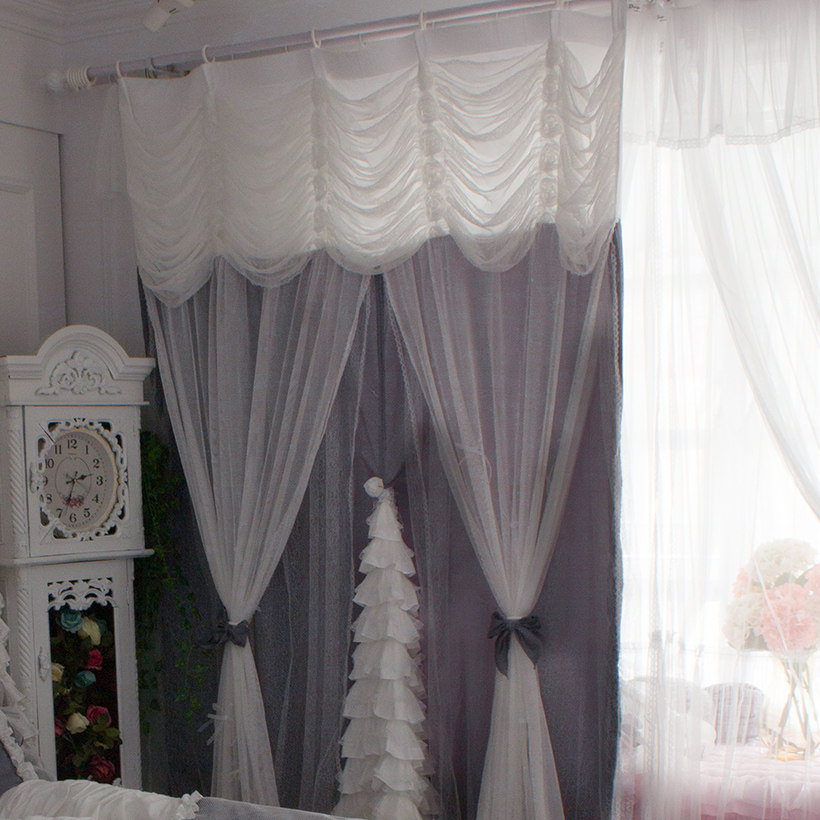 Floor-to-ceiling curtain Princess bedroom shading dream living room White Gray Nordic luxury girl custom lace style