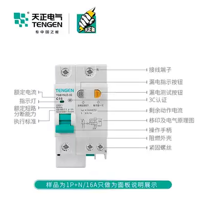 Tiancheng TGB1NLE air switch with leakage protection circuit breaker 2p switch 63A single phase 32A household 220V