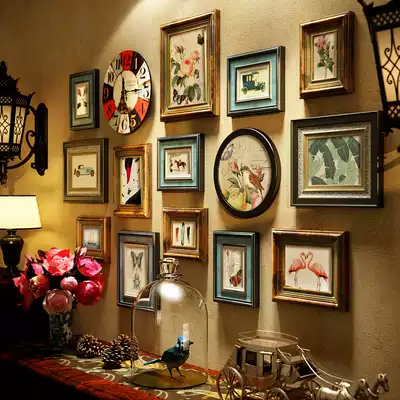Solid Wood American country deer head photo wall retro wall clock living room dining room European style frame wall old porch decoration