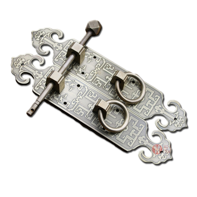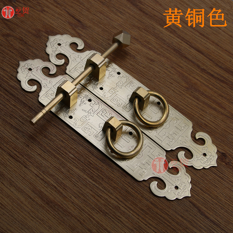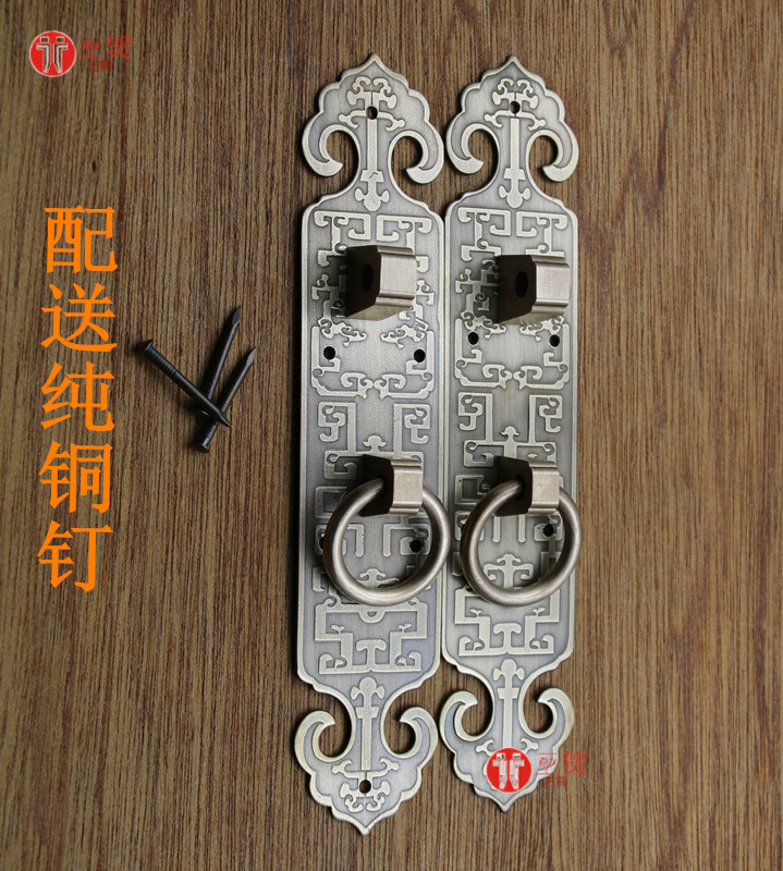 Imitation ancient Chinese pure copper cabinet door straight strip handle wood door accessories Longgrain Ruyi Ming fit pull ring decorative bolt handle