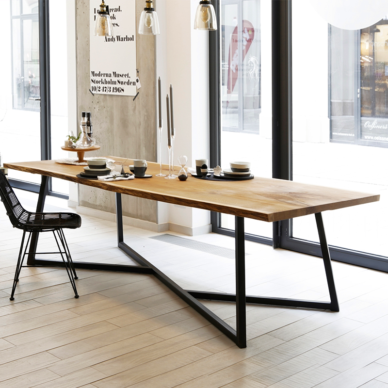 Nordic dining table wrought iron solid wood dining table industrial style rectangular retro desk creative desk conference table long table