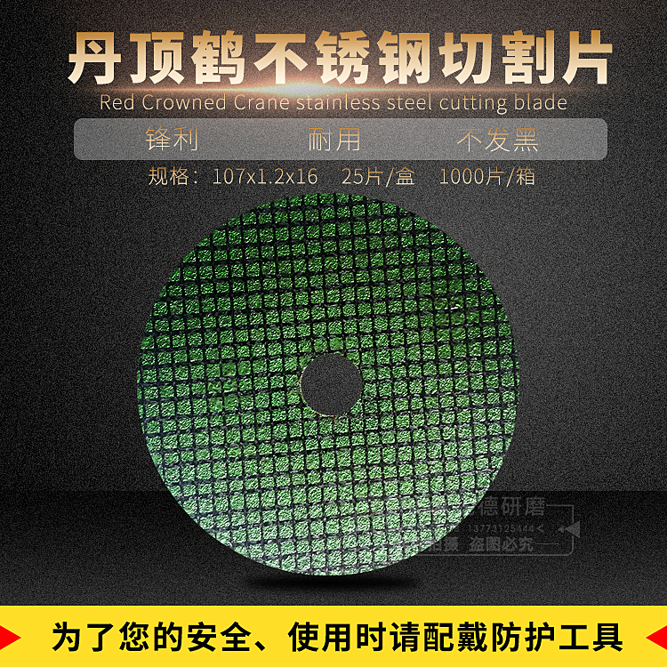 Red-crowned crane cutting piece stainless steel cutting piece 107x1 2x16 grinding wheel piece sand double mesh green sheet cutting piece