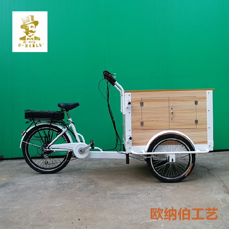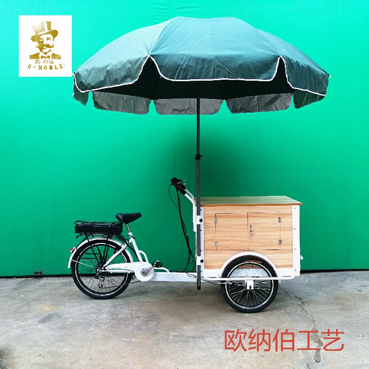 Onab factory direct sales reverse ride human electric tricycle Coffee tea snack delivery fashion tricycle