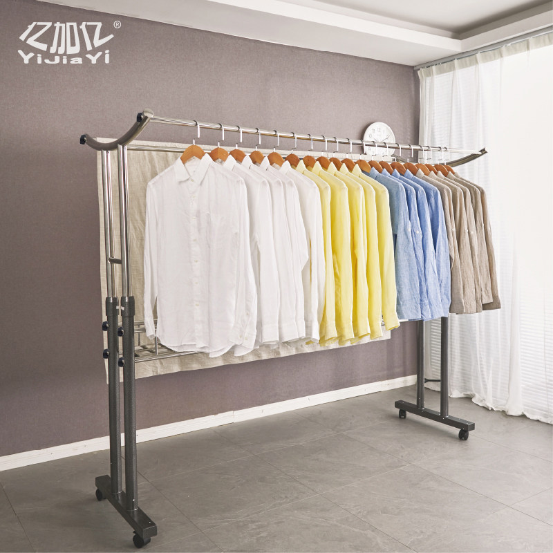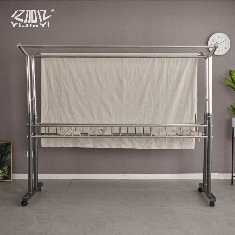 Outdoor Large Clotheshorse Ground Quilted Rack Home Clothes Hanger Stainless Steel Double Bar Yard style with wheels-Taobao