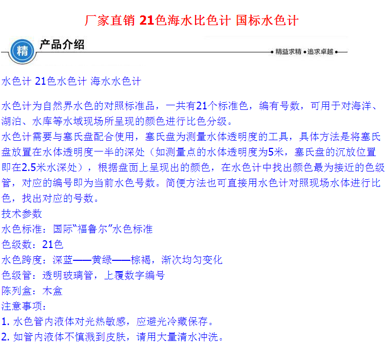 21 color sea water colorimeter watercolor meter Forul national standard water quality detection colorimeter marine wood case