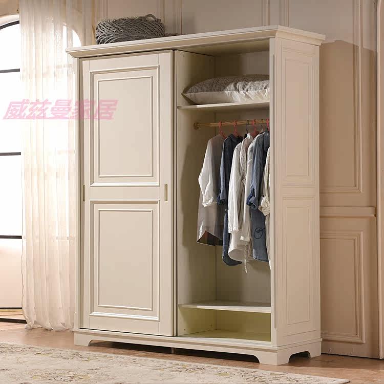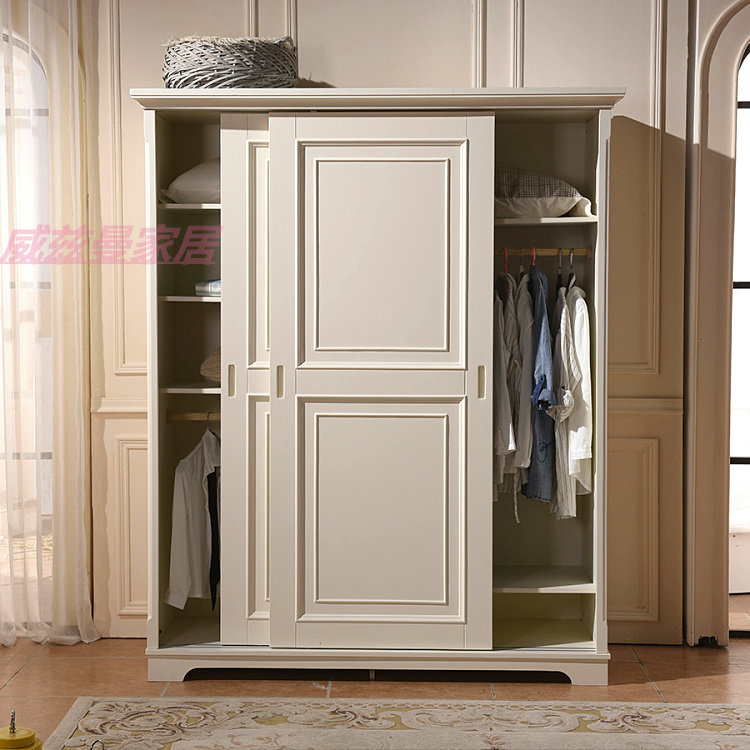 American Solid Wood Pushing Ramen Wardrobe Bedroom Double Door White Moving Door Closet Clothes Closet style minimalist lockers-Taobao