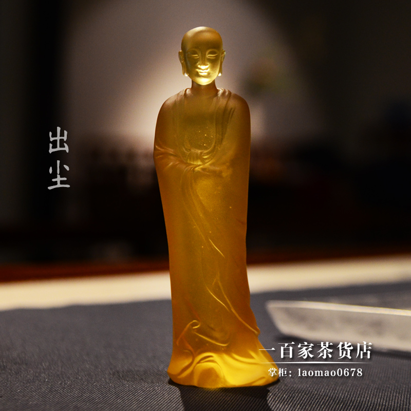 Ancient dewaxed glass artist Liang Mingyu originally designed dusty Zen indoor tea table light blue ink decoration