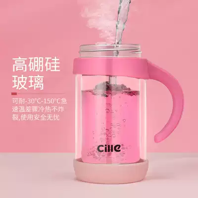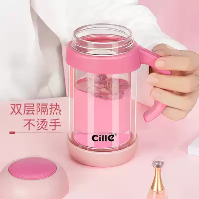 Xile double-layer glass with handle teacup Men's and women's office cups with filter large-capacity household tea cups