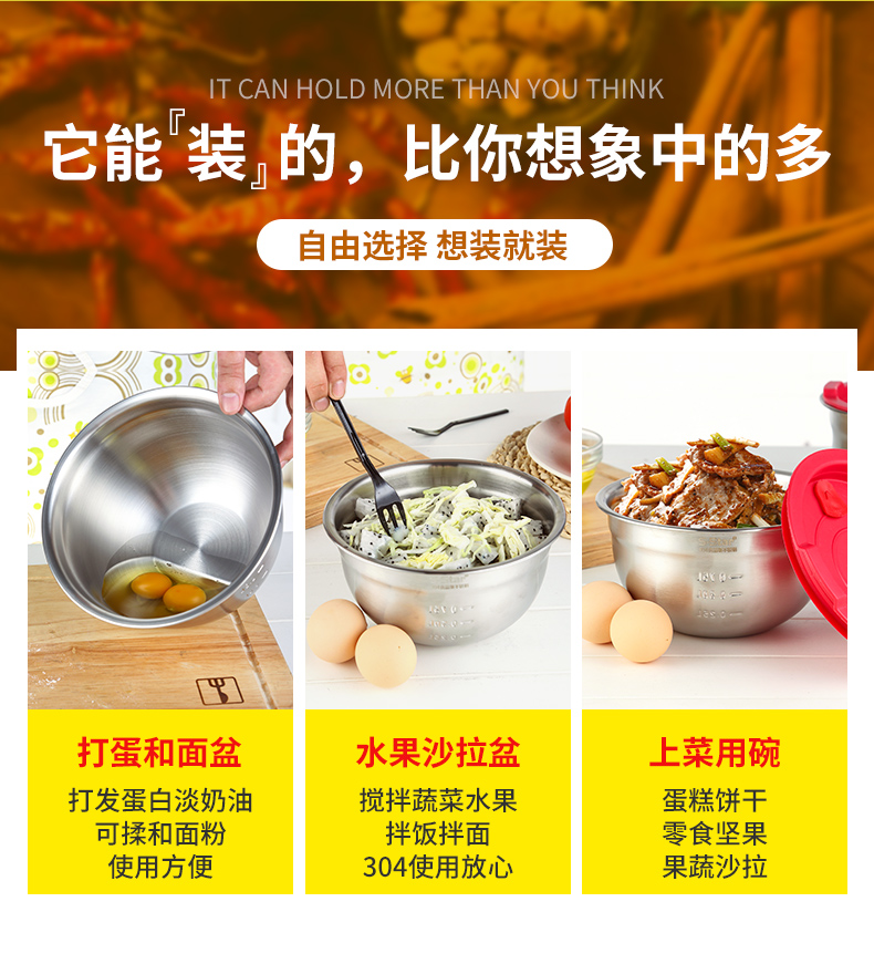 304 stainless steel egg-beating basin baking basin home and basin kitchen salad cooking basin hair basin deepening and thickening