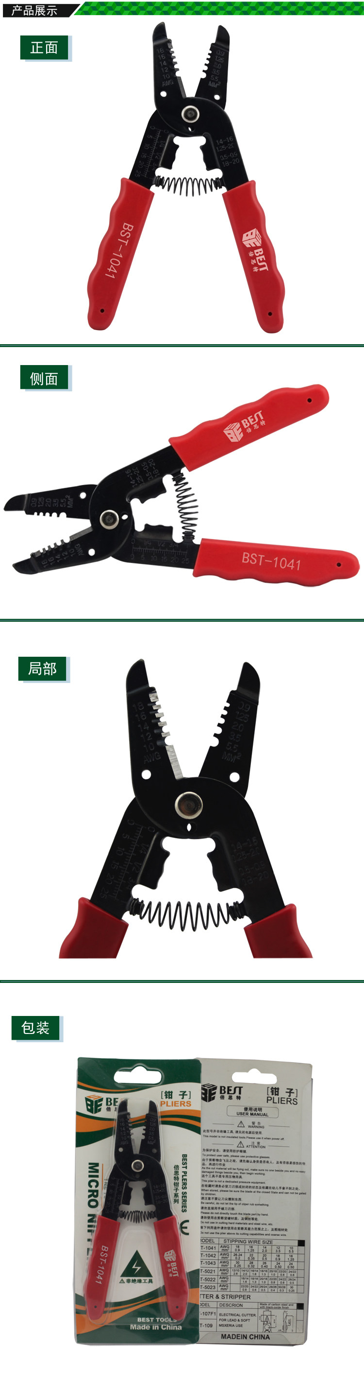 BST-1041 wire stripper, wire pliers, high-quality wire stripper, stripping range 0 9-5 5m㎡