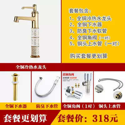 European hot and cold faucet Basin all copper porcelain handle faucet sink high faucet low basin faucet