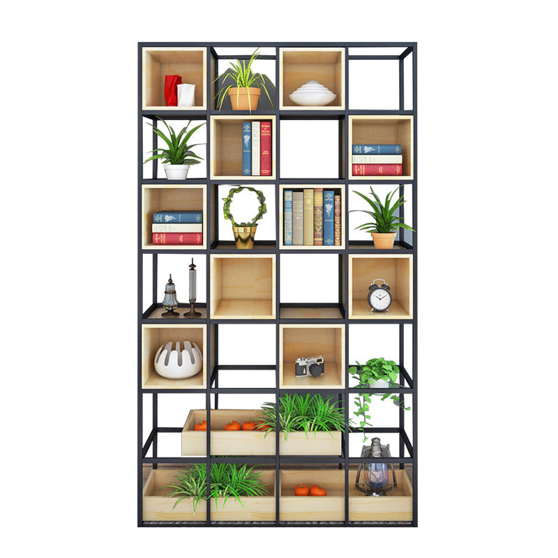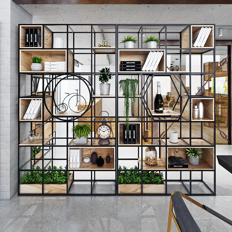 Hugang American Loft Industrial Wind Screen Office Bookshelves Dining Room Genguan Plaid Frame Iron Art Partition Shelve