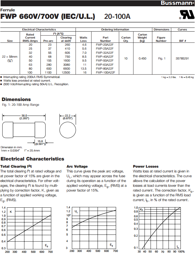 FWP-50A14F USA Bussmann fuse FWP-50A14Fa 700V 50A 14x51 UL CE