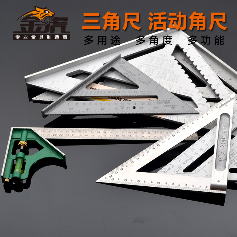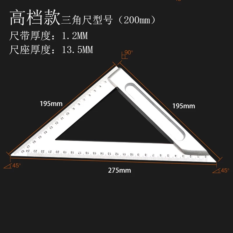 Aluminum alloy 45 degree angle ruler triangle ruler woodworking multifunctional thickening 200mm 300mm decoration tool angle ruler