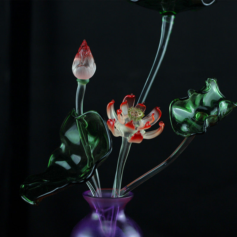 High gear gift glazed lotus flower for tasking Buddha pure handmade with five pints of lotus flowers evergreen front for vases