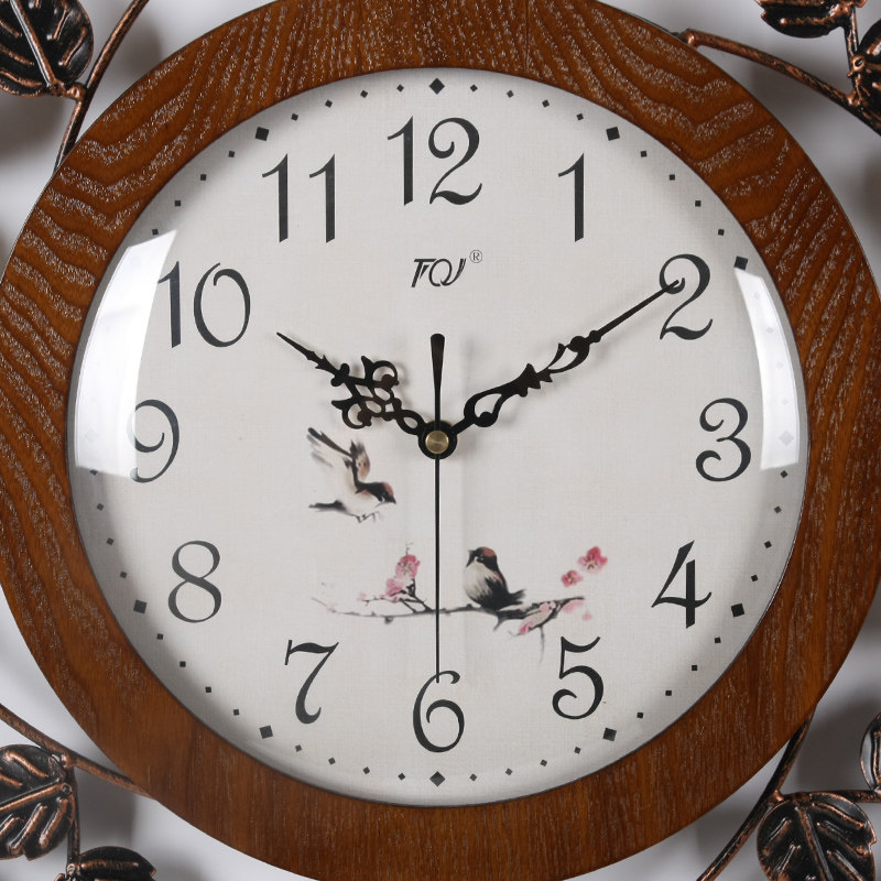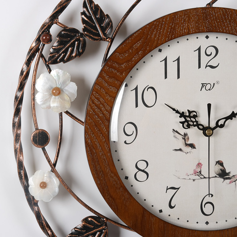 TQJ large European style wrought iron wooden wall clock shell quartz clock living room bedroom mute decorative wall watch