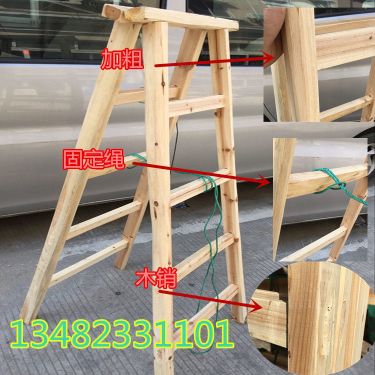 Home Wood Stairway Double Sided Wood Escalator Engineering Furnishing Folding Ladder Wooden Head Man Character Wooden Ladder Nursery Climbing Ladder