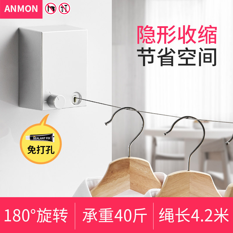 Balcony invisible shrinkage clothesline non-perforating wall hanging indoor expansion wire rope hotel bathroom clothesline