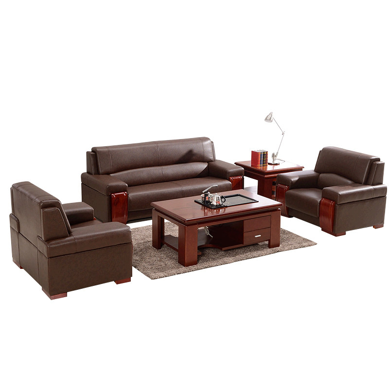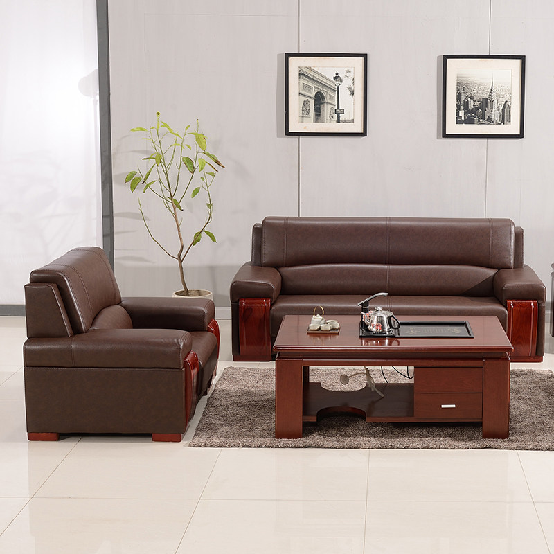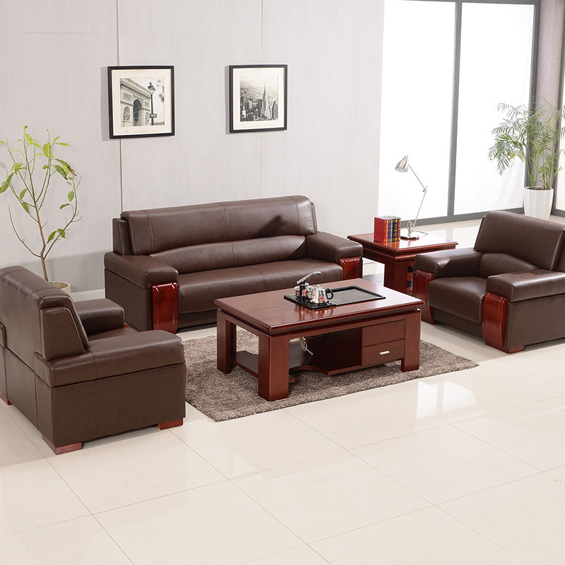 Office furniture Authentic Leather Sofa Office Tea Table Composition Business Reception Bull Leather Sofa Trio 223