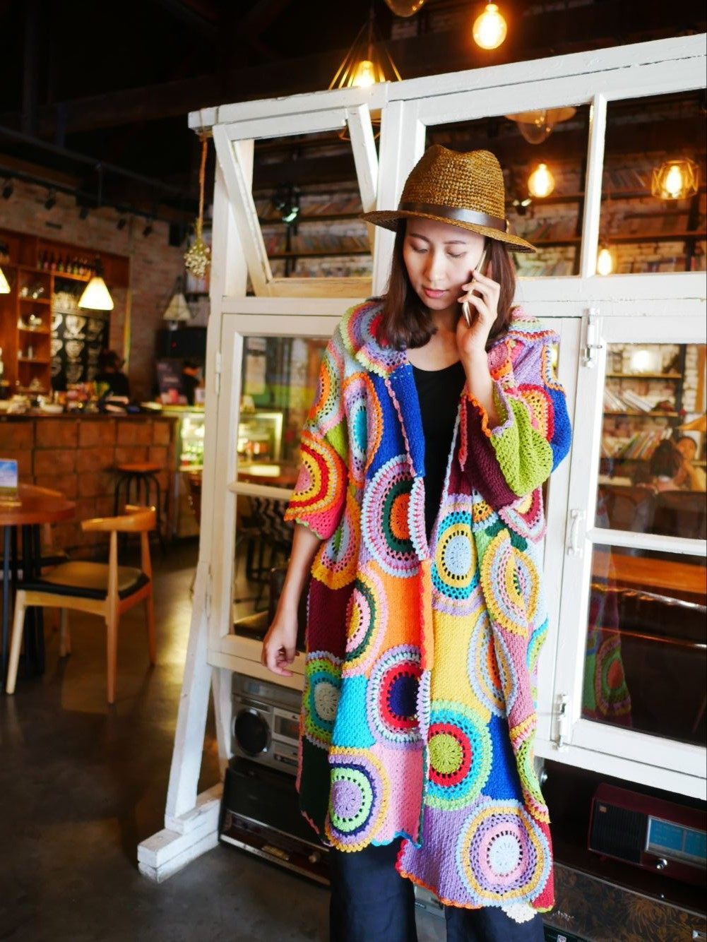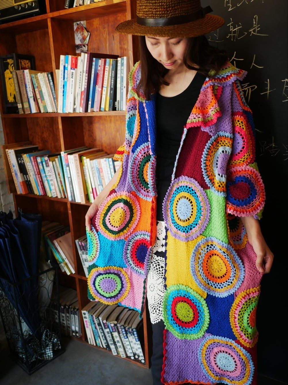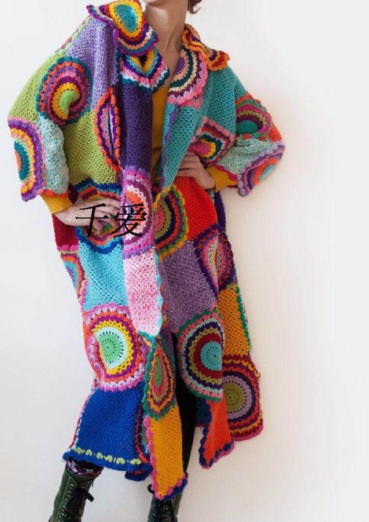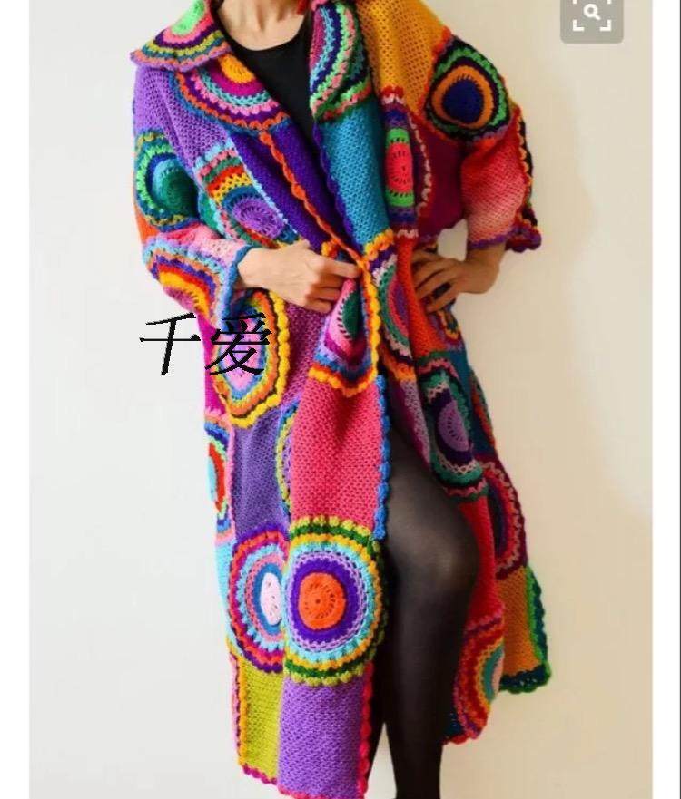 Good New Year ~ original literature and art Fan retro pure handmade splicing collared with colorful fur coat hook flower gowns