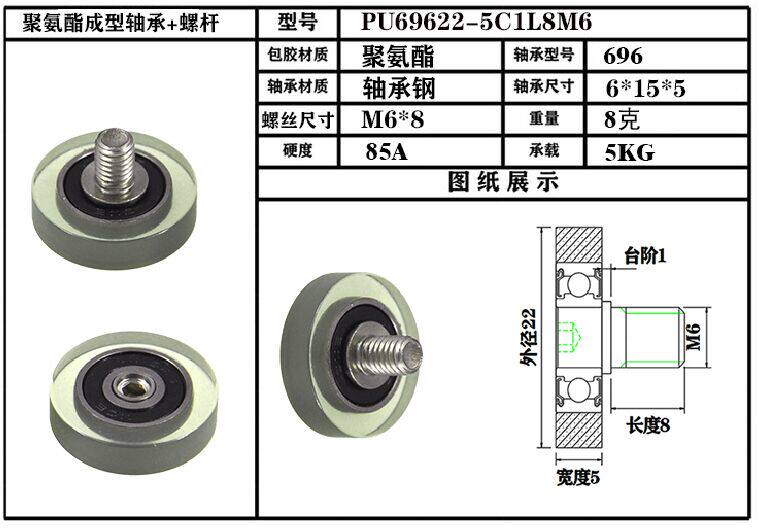 Mesmie UMBH6-22 polyurethane molding bearing pulley screw packaging bearing PU69622-5C1L8M6