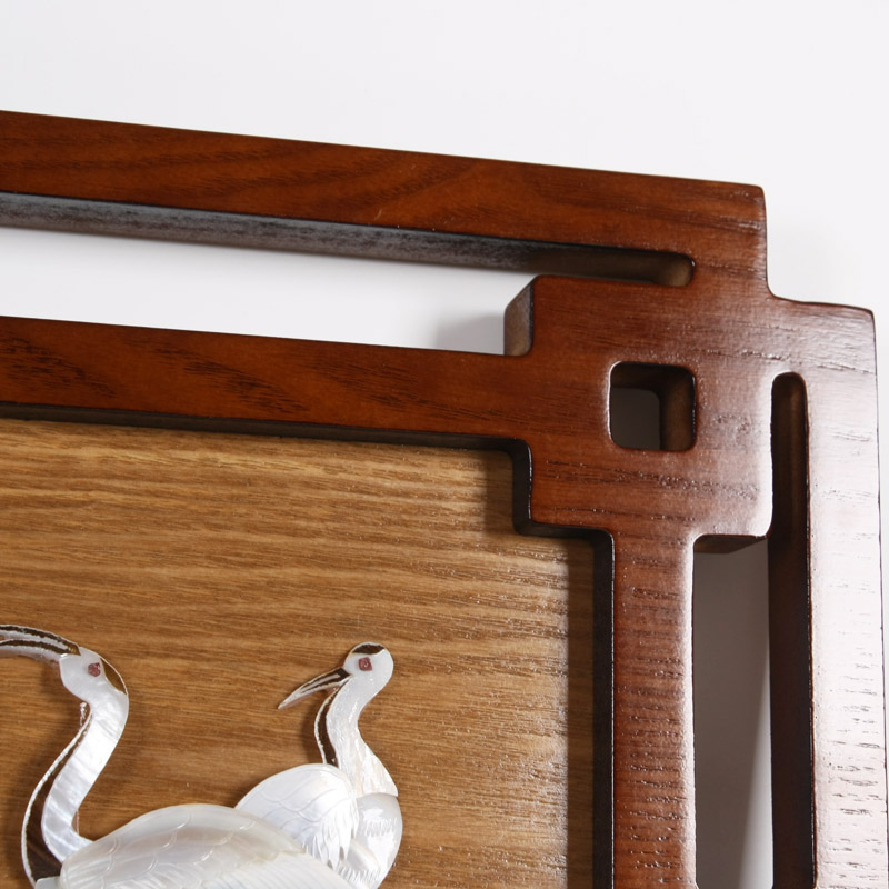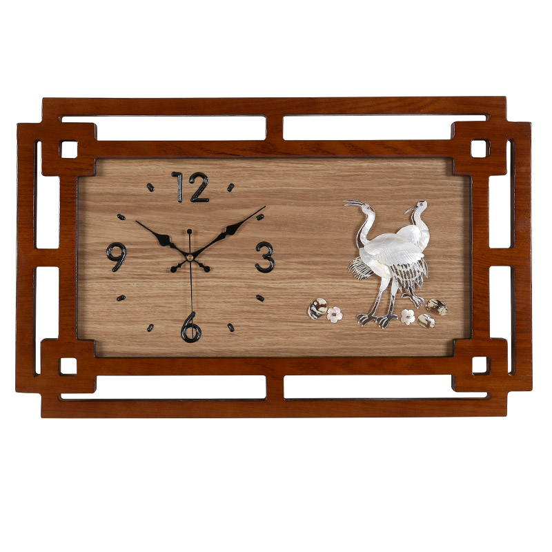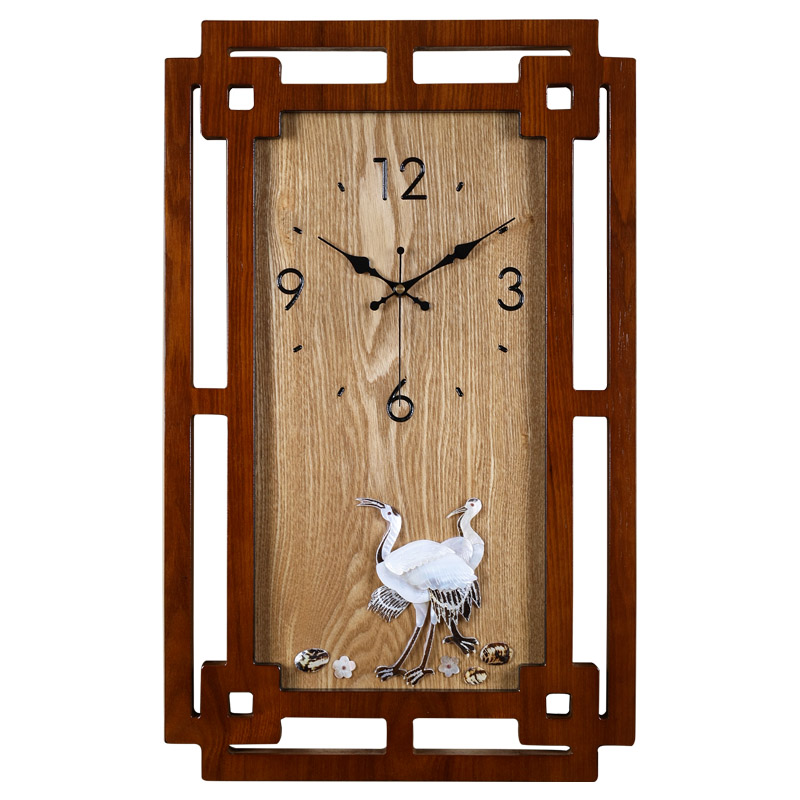 TQJ large Chinese style wood wall clock shell quartz clock living room auspicious crane bedroom mute wall watch