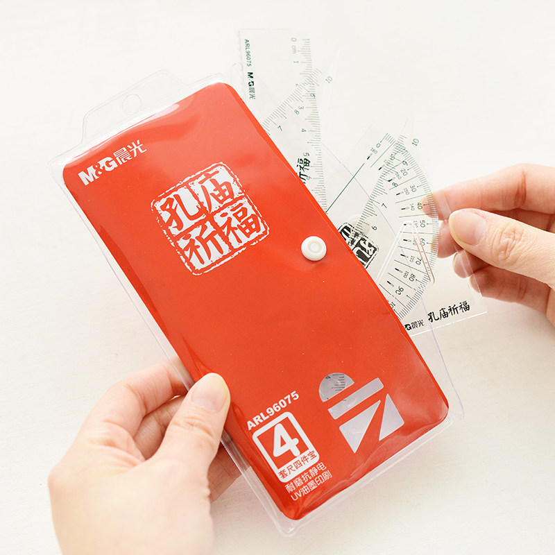 Morning light Kong temple pray for fugue jacket ruler 4 pieces of suit Ruler Protractor Triangle board Student exam stationery ARL96181
