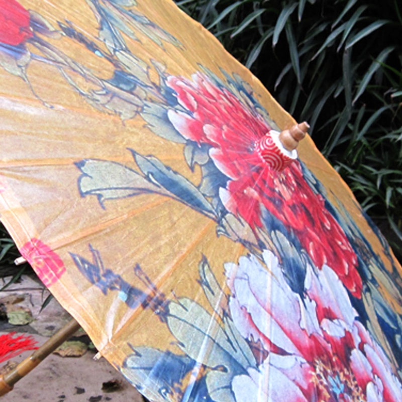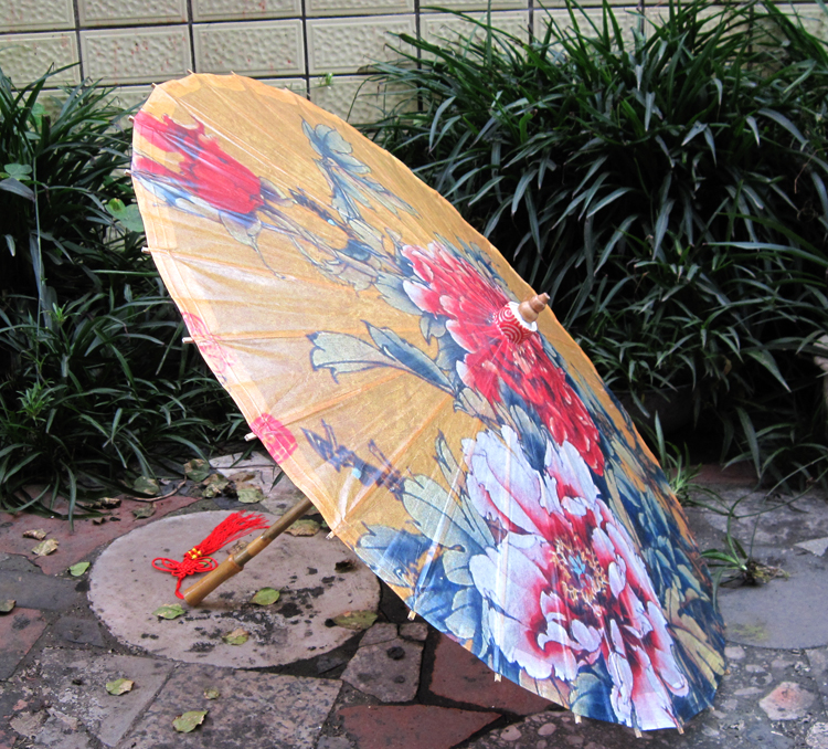 Luzhou Oil Paper Umbrella Rain Protection Sun Protection Bamboo Art Classical Jiangnan Dance Performance Decoration Chinese Wind (Yellow Bottom Peony)