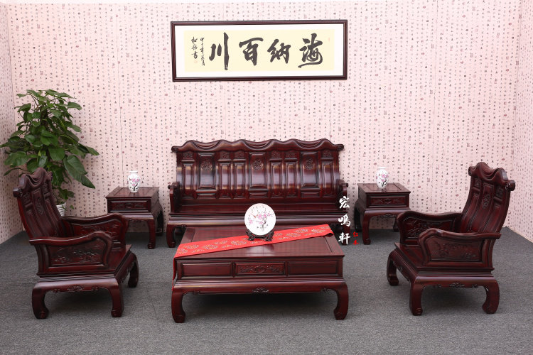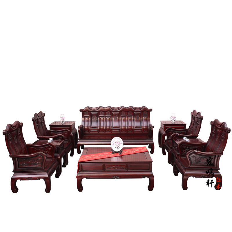 Hongming Xuan Red Wood Furniture Large Terrace Number Living Room Sofa Composition Solid Wood Imitation Ancient South American Acid Branches Wooden Sofa In a dozen sets