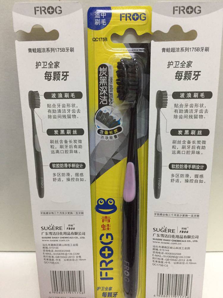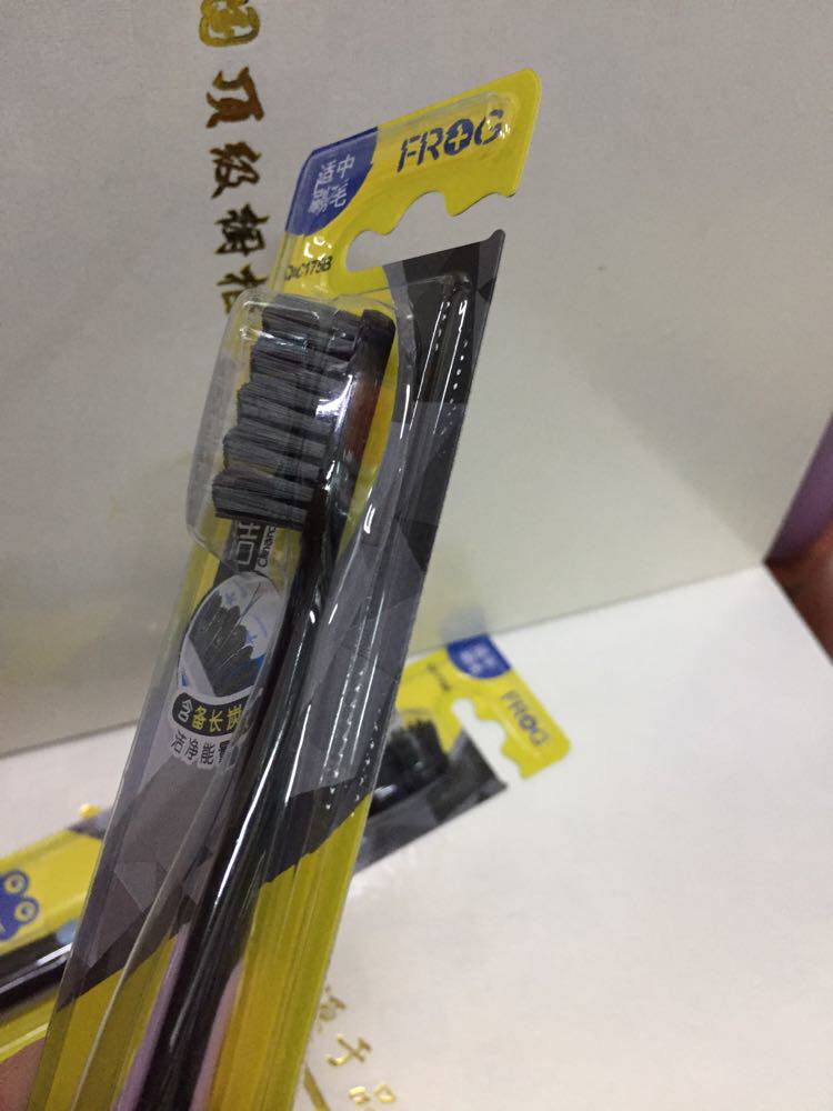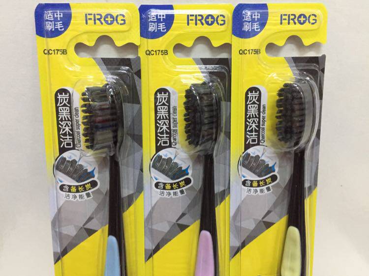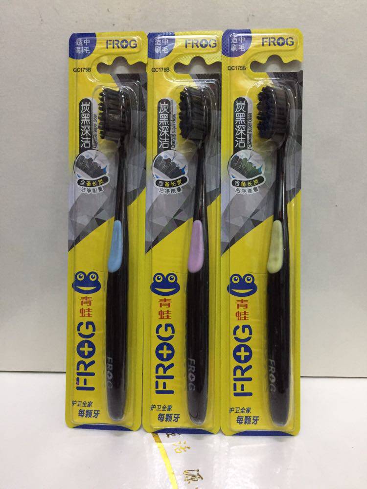 6 pcs 22 yuan frog medium bristle toothbrush QC175B moderate bristles carbon black deep clean