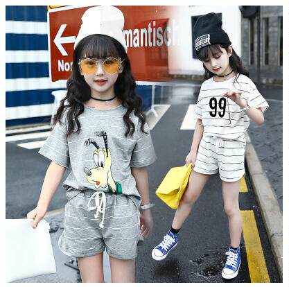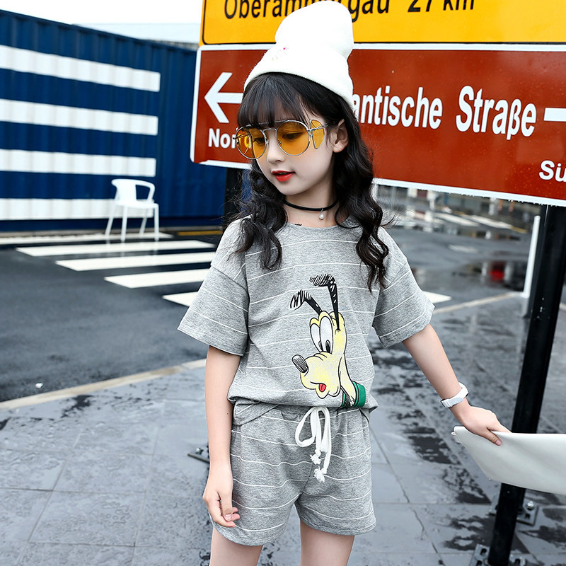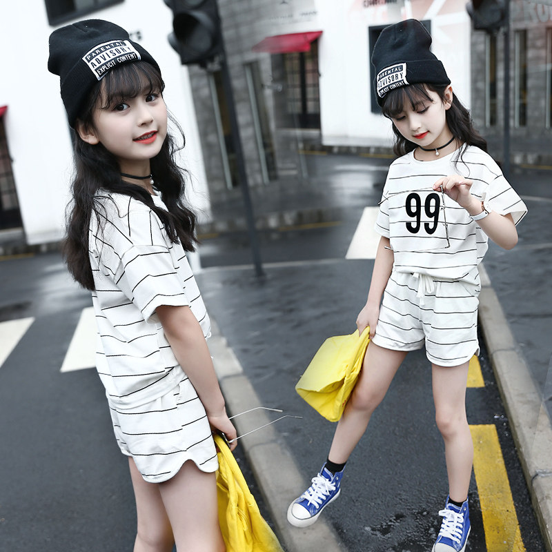 Girls Short Sleeve Summer Kids 2022 new Summer Children in Big Child Pure Cotton Shorts Short - Piece Casual Casual Casual Casual Two Pieces