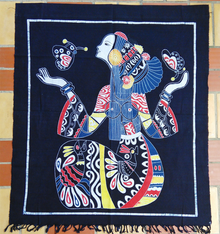Guizhou Ethnic DIY Handicraft Miao Wax Dyeing Hand Painting Hotel Dining Hall Home Decoration Wall-mounted Miao Batik