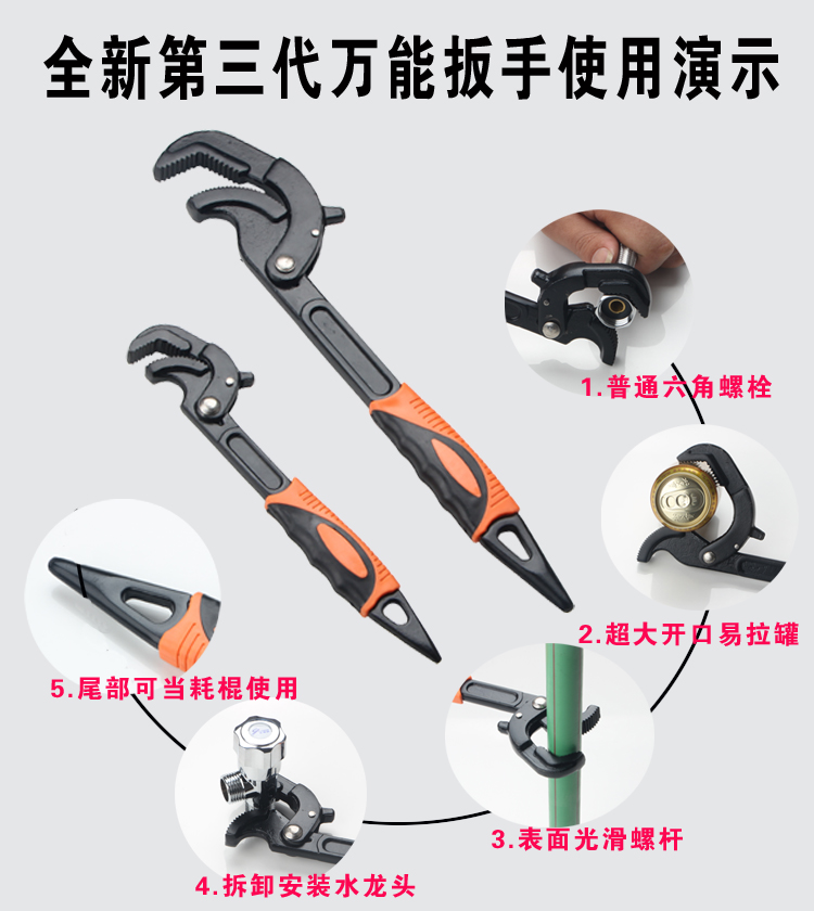 Universal wrench Germany multifunction universal active self-tightening wrench with quick tube clamp tool for water heating wrench