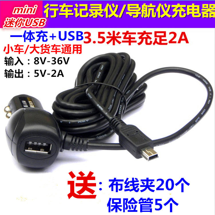 Wagon recorder car charger onboard GPS satellite navigation charger power cord 3 5 m 2A with mobile phone USB plug