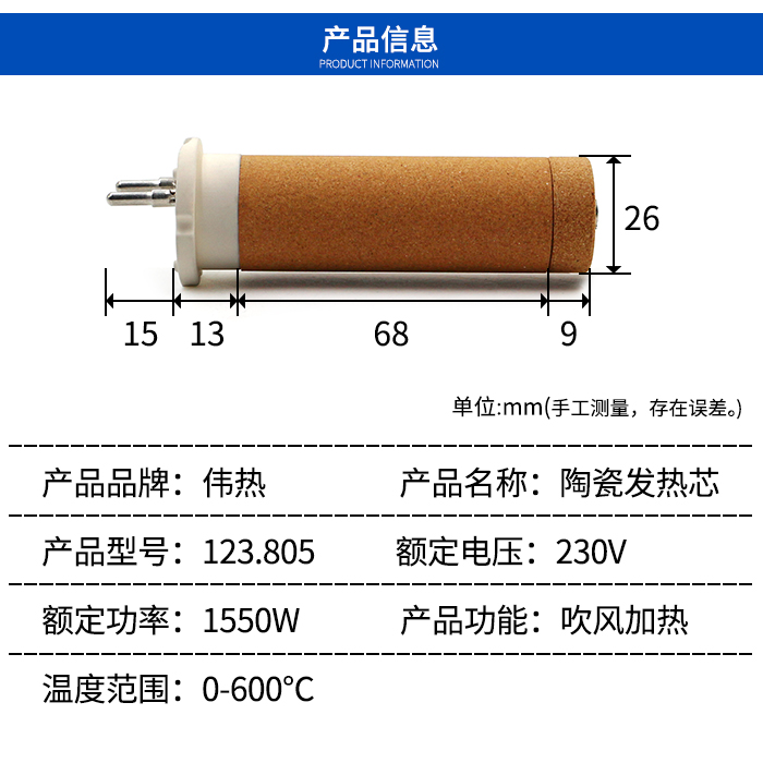 WeiGe W123.805 230V 1550W Plastic Welding Gun Ceramic Heating Core 1600WPP Welding Gun Heating Core