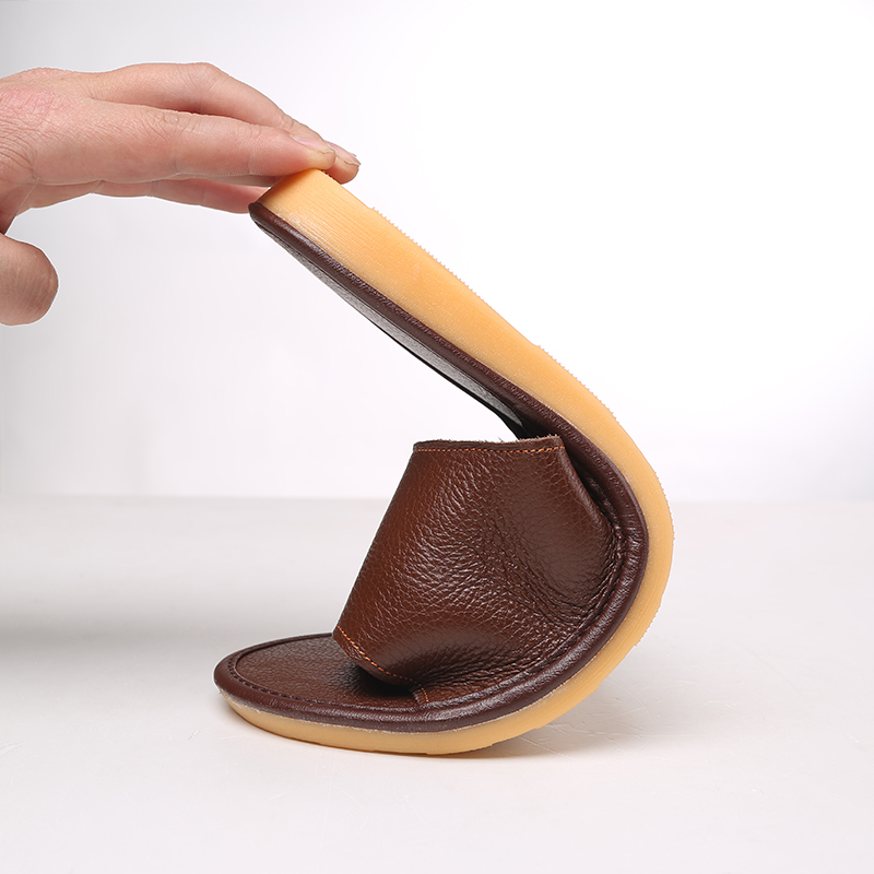 (First layer buffalo leather sandal slippers shoes) indoor men's and women's leather high-grade gown shoes home summer non-slip beef tendon bottom