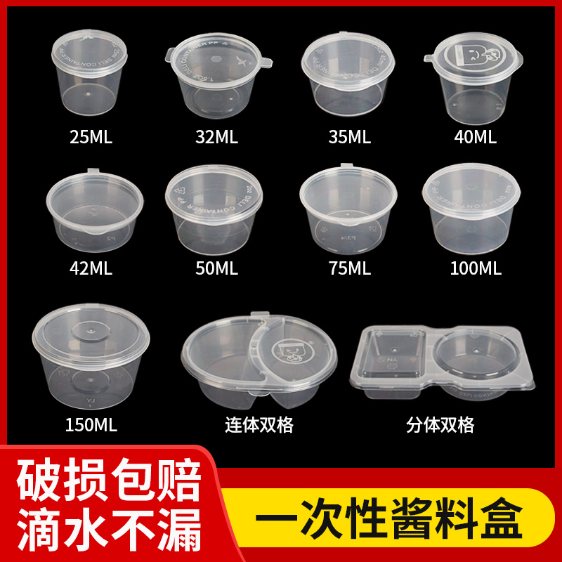 Disposable sauce cartridge cover seasoning cup takeaway small dipping material box packed with conjoined chili oil vinegar round soup bowl-Taobao