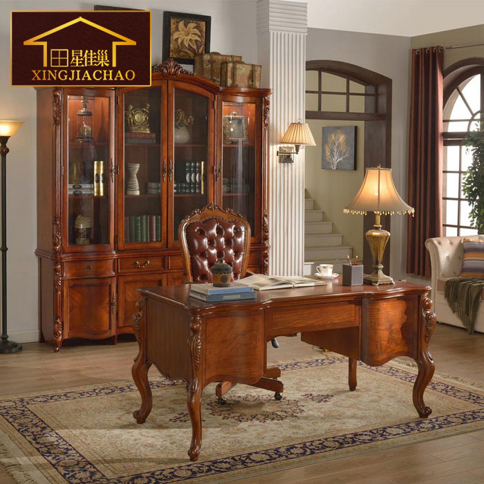 American solid wood bookcase combination European study furniture bookcase four-door multi-function locker display cabinet