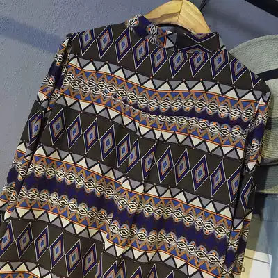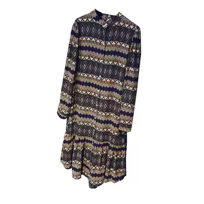 Korean version of loose large size autumn women's stand-up collar printed floral dress long-sleeved chiffon medium and long version of shirt skirt tide