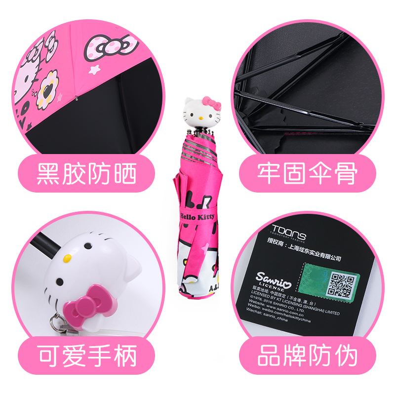 HELLO kitty CHILDREN UMBRELLA BLACK Fold Increase Student Clear Umbrella Cartoon Girl Sunscreen Umbrella