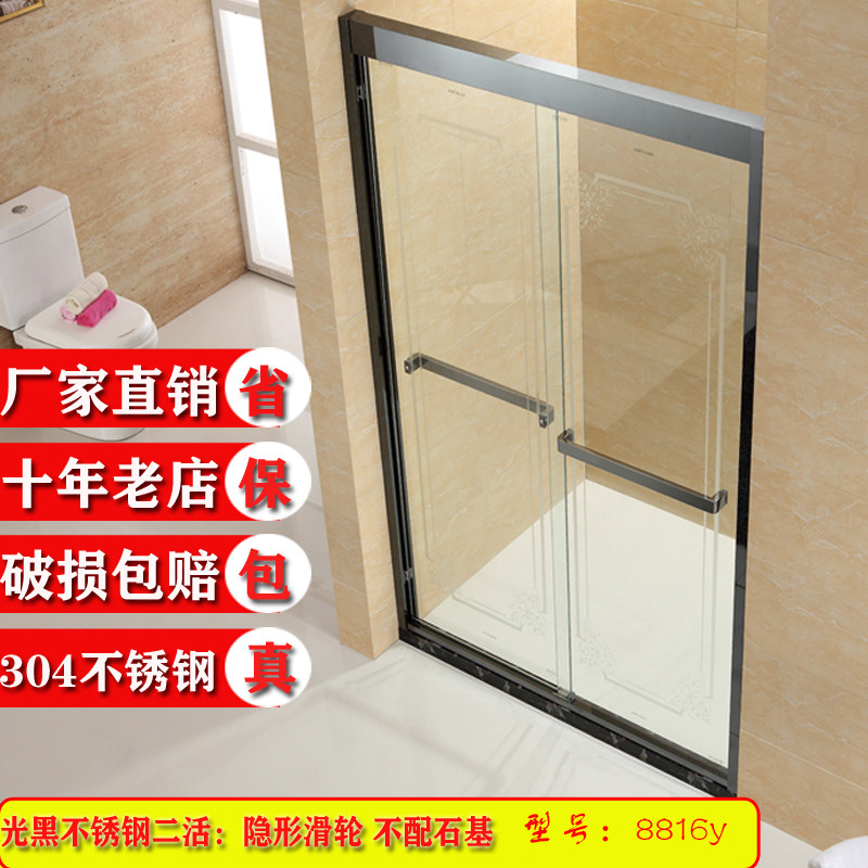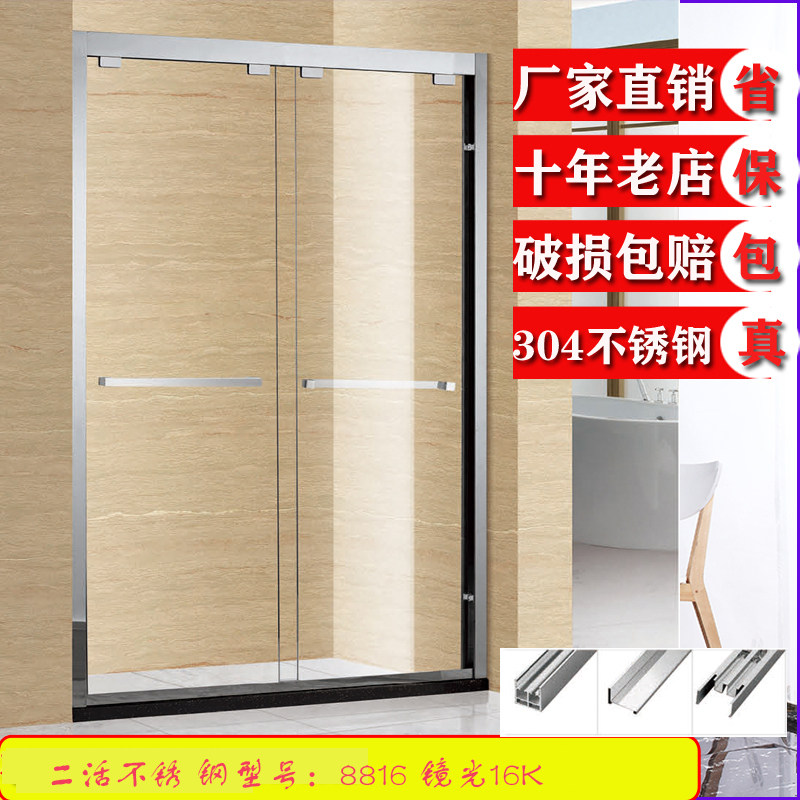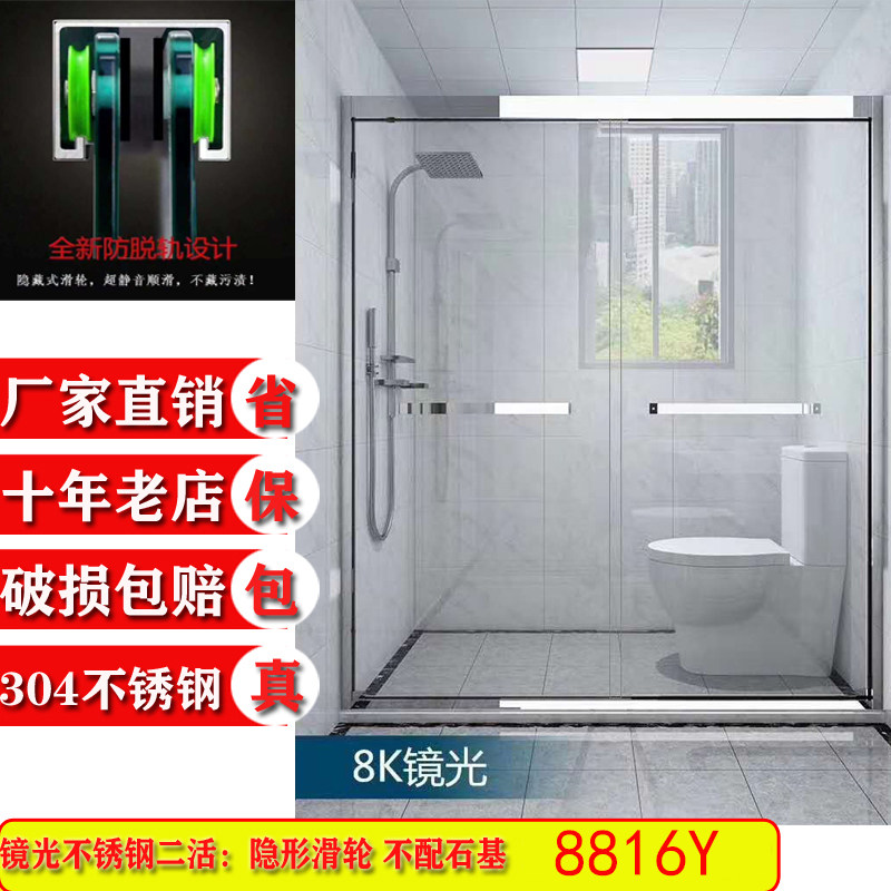 Custom tempered glass shower room one-line stainless steel household bathroom partition two-live wet and dry separation sliding door