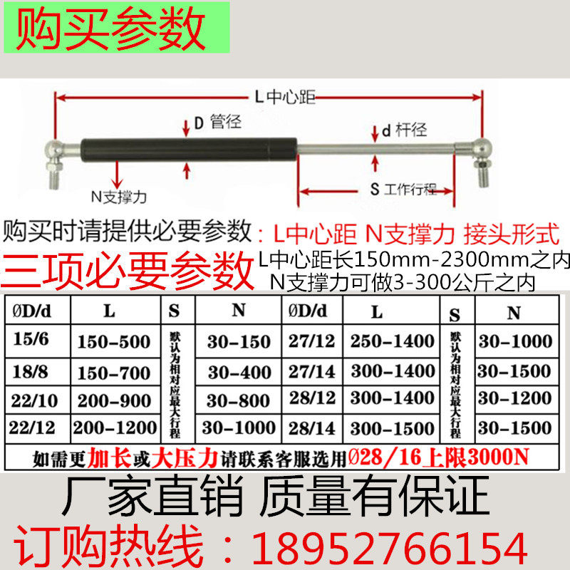 Hydraulic rod gas spring pneumatic support telescopic rod propaganda bar air pressure rod damping rod light box advertising gas telescopic rod