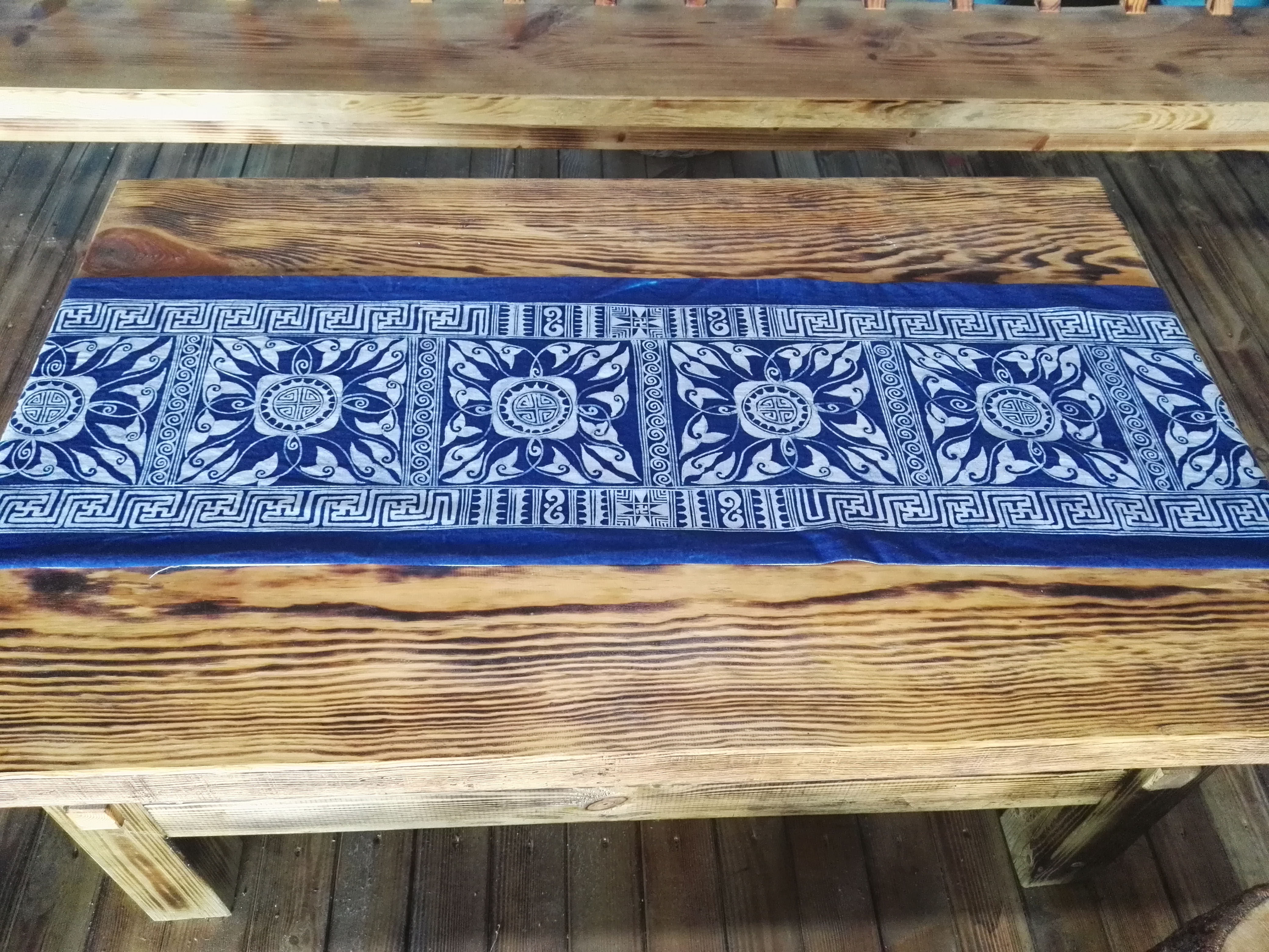 Wax Dyeing Table Flag Tea Flag Bed Banner Table Cloth Cup Mat Tea Mat Tea Mat for geometric pattern Guizhou wax dyeing Danzhai Wax Dyeing Plant