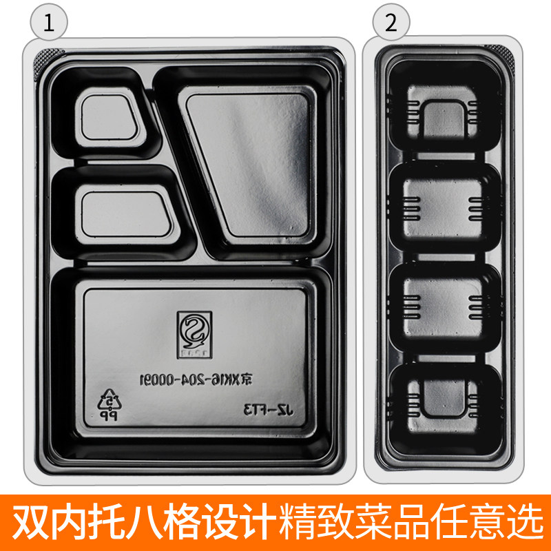 Disposable grid lunch box Black multi-grid Korean bento fast food box Delivery package Japanese Western eight-grid lunch box