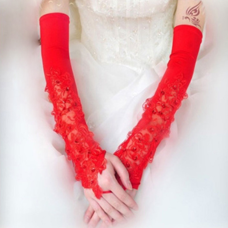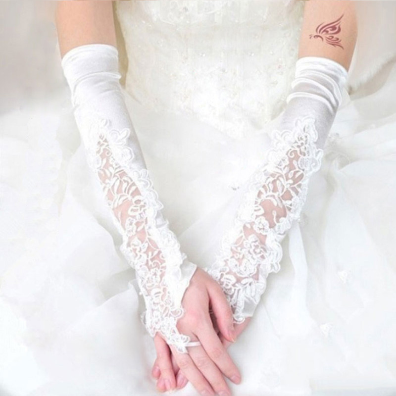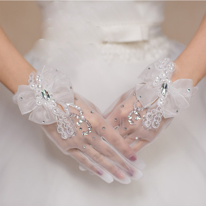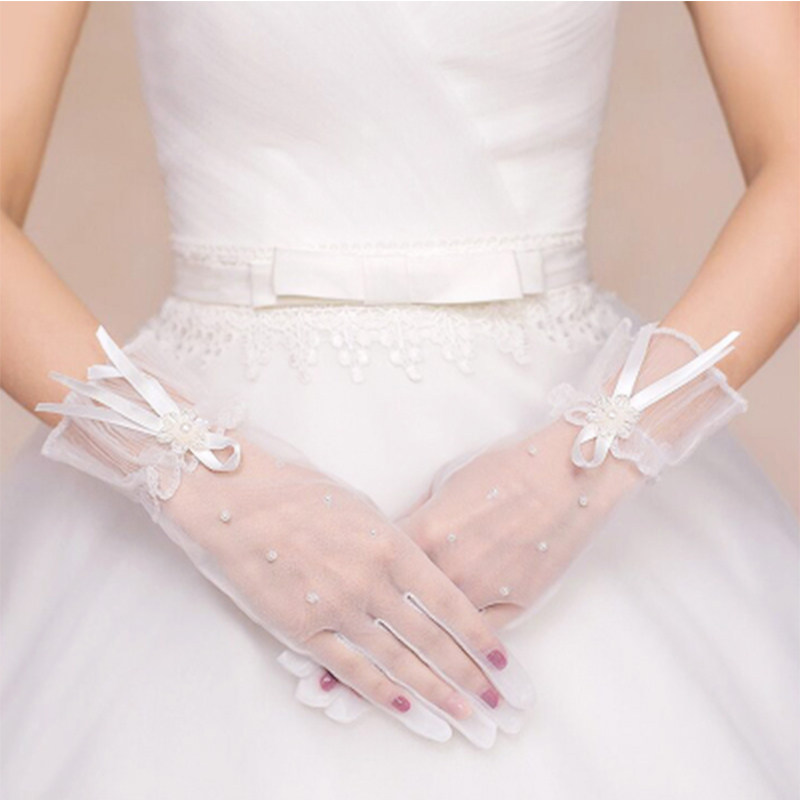 New bride white gloves lace mesh summer shade simple veil Korean wedding gloves