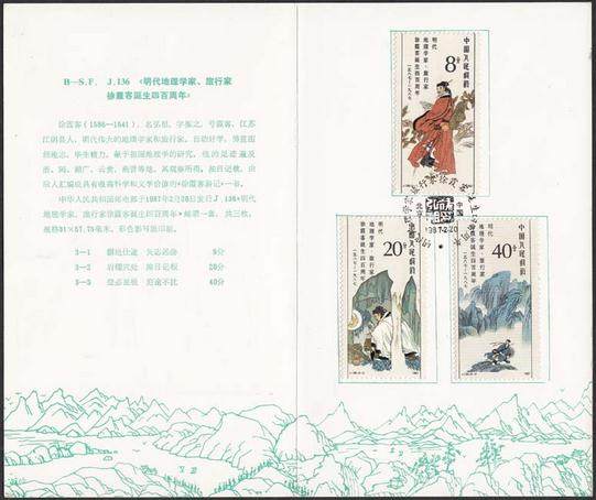 J136 The 400th Anniversary of the Ming Dynasty Geographer Xu Xia Xia, commemorates the postcode