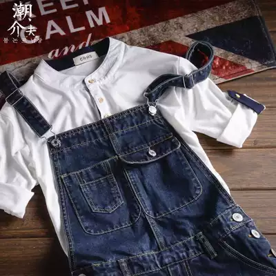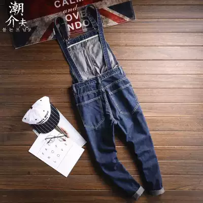Summer personality denim jumpsuit slim Korean version of Japanese tooling hug baby bag pants boys and girls suspenders dark blue