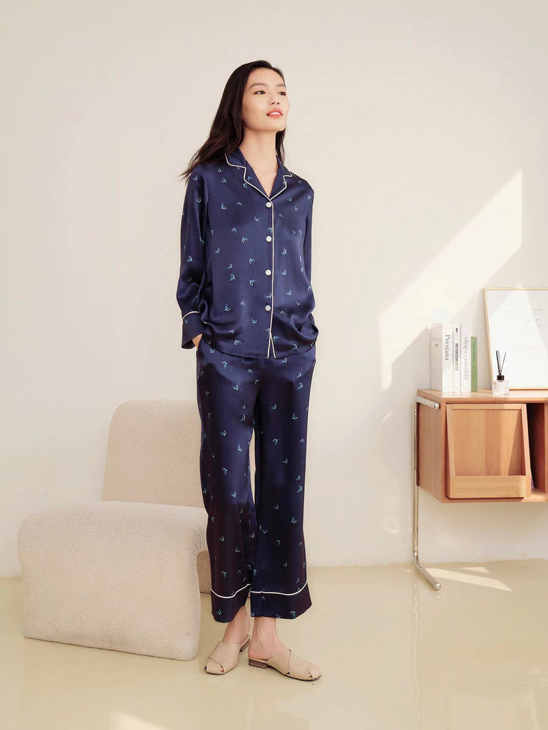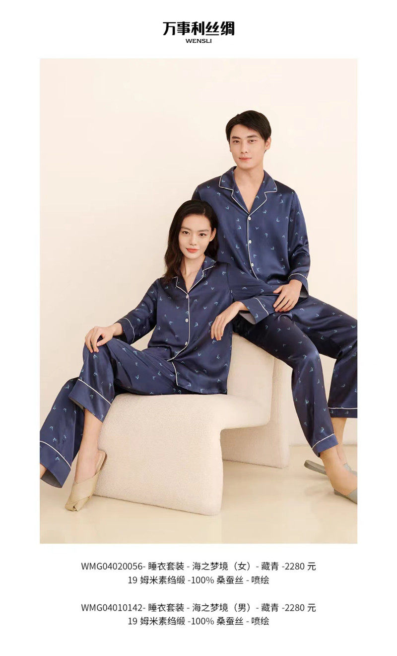 Masterpiece Silk Silk Pyjamas Suits 2022 Real Body Shop New Men and Men 19 Mimi Crepe Satin Sea dream-Taobao