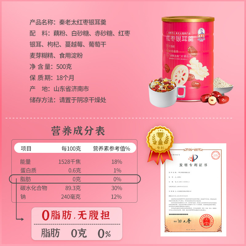 Qin Laotai RED DATE SILVER EARTHEN SPOON UPGRADE LOTUS ROOT LILY POWDER FLUSH WITH DRINK BREAKFAST SUBSTITUTE AROMA SWEET LOTUS ROOT POWDER BIG CANNED